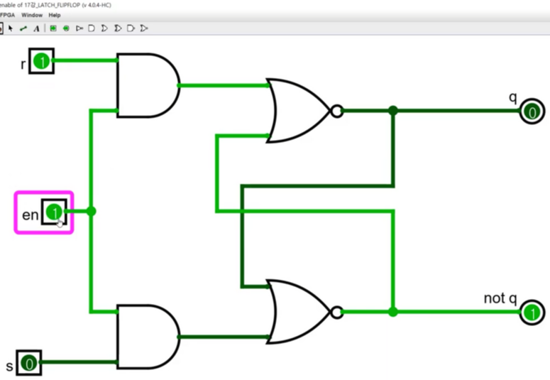 - 게이트가 0으로 바뀌어도 기존에 set의 값은 남아있다. 왜냐 그것이 래치의 기능이다.