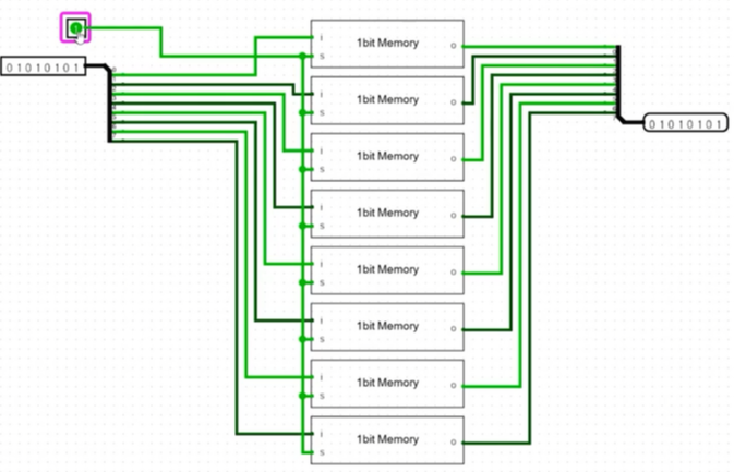 1바이트 메모리에 출력 차단하거나 흘려보내는 메모리 기능을 추가하면 레지스터가 된다.