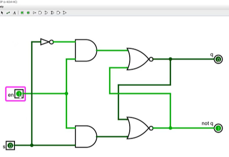 and게이트 두개를 기존 SR래치의 NOR게이트에 추가한다. (유툽-쓸모없는 17강- 16:20)