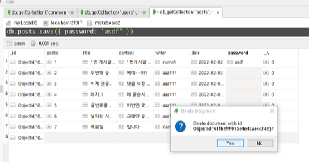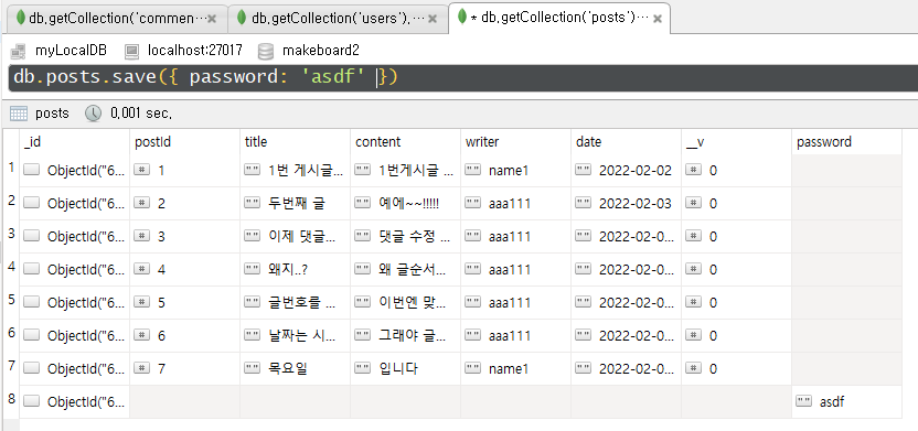 항해 25일) Node.js- 몽고디비-로보3티에서 직접 문서추가, 수정하기 mongoDB, mongoose, Robo3T