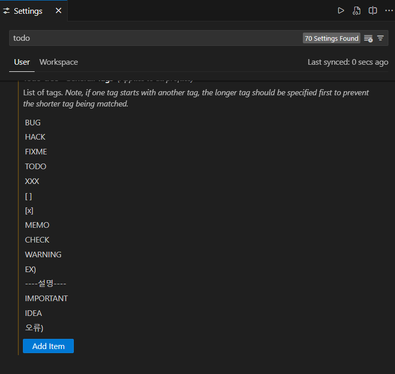 - 예시로 내 셋팅 코드를 올려놨다. 한글도 가능하다.