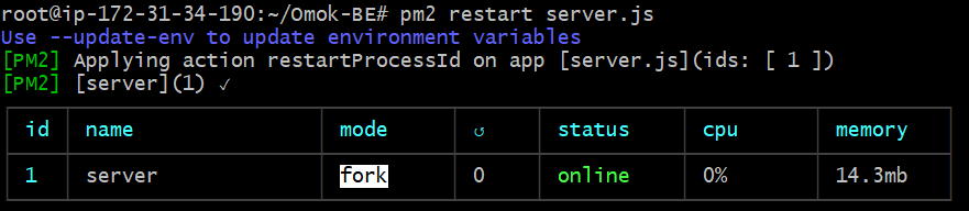 2. pm2 restart server.js 재시작한다.