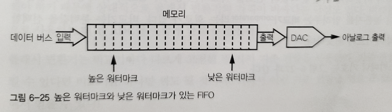 - CPU가 수행하는 다른 작업과 무관하게 데이터를 일정한 비율로 읽어서 처리하기 위해 그림 6-25 처럼 FIFO(First in First out, 선입선출) 설정을 만들어서 이를 구현한다.
