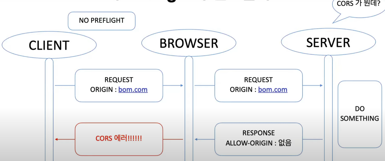 클라이언트가 origin: bom.com을 서버에게 보내면