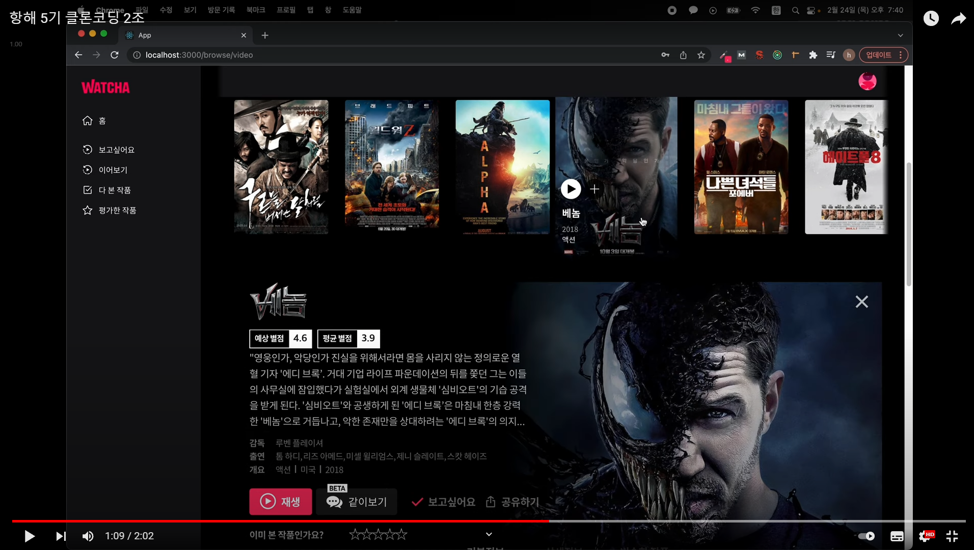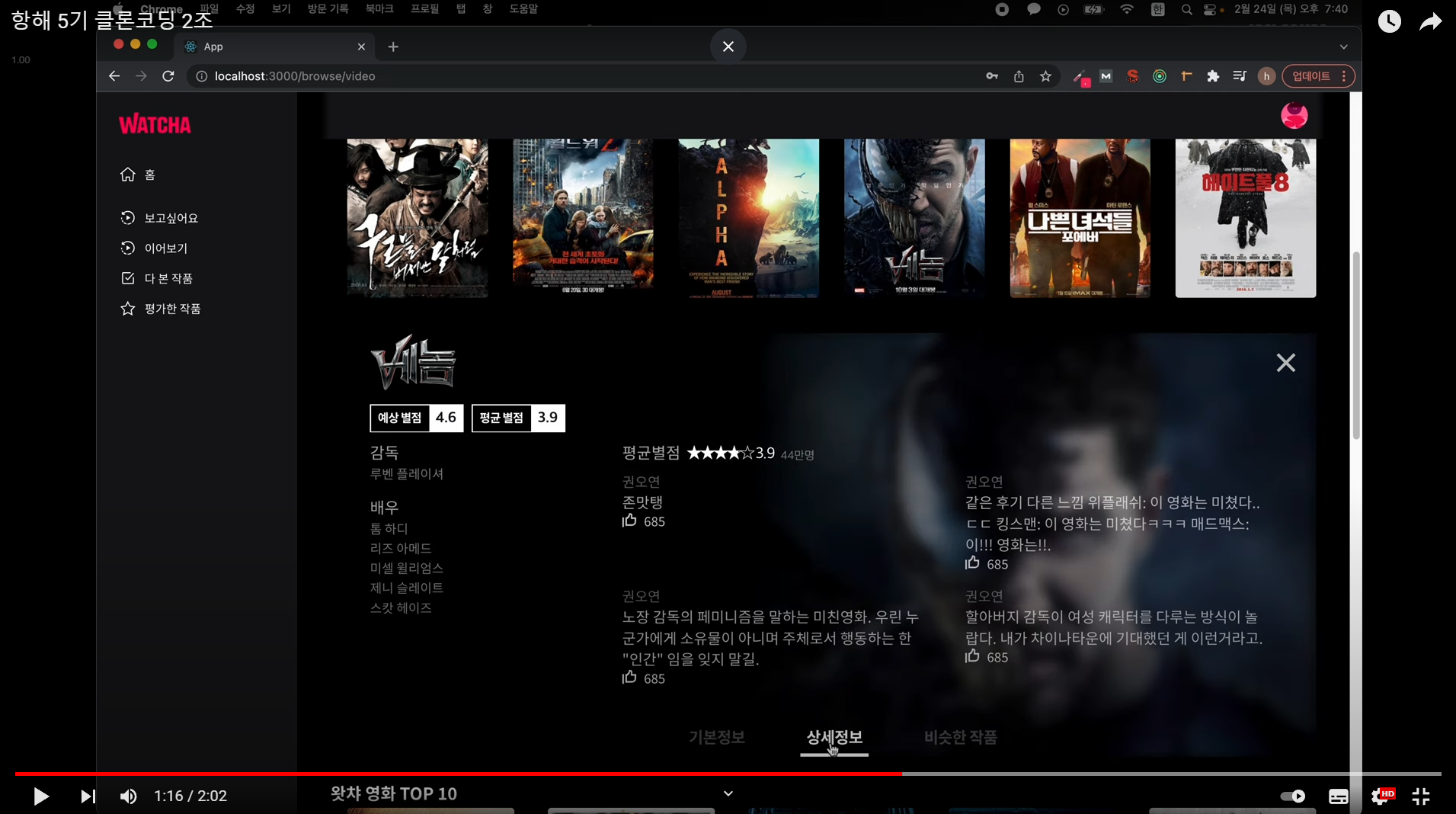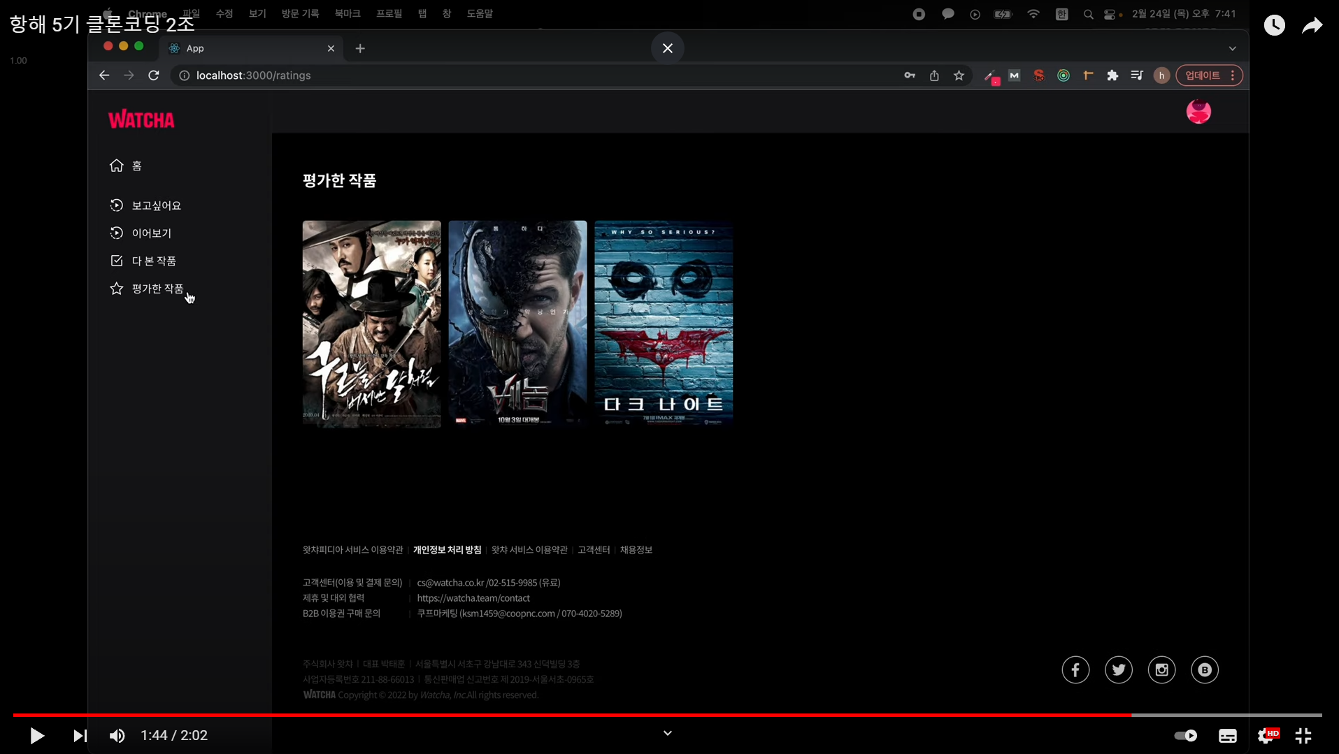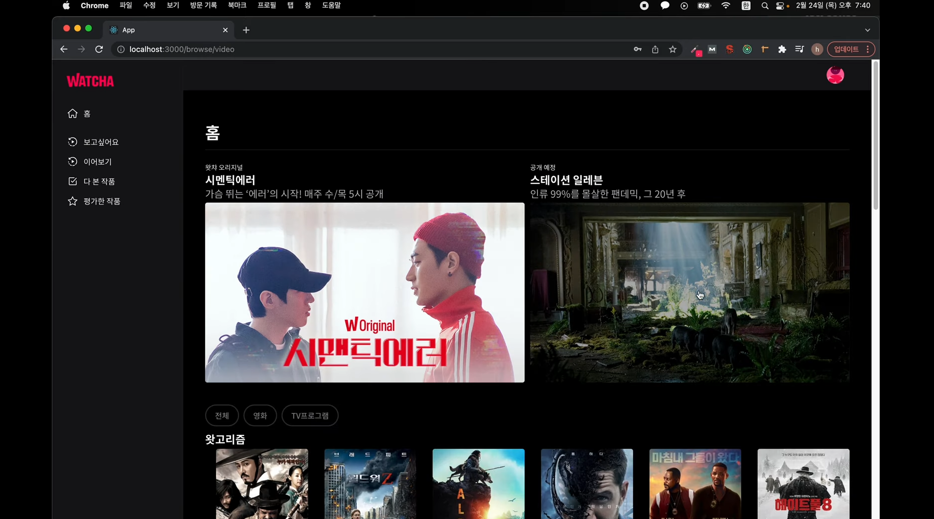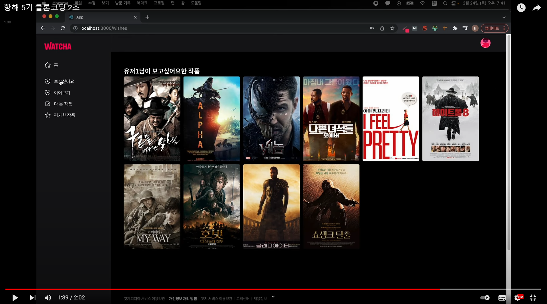 항해 46일) 클론프로젝트 배포 완료 (Node.js + React : 왓챠) 본문