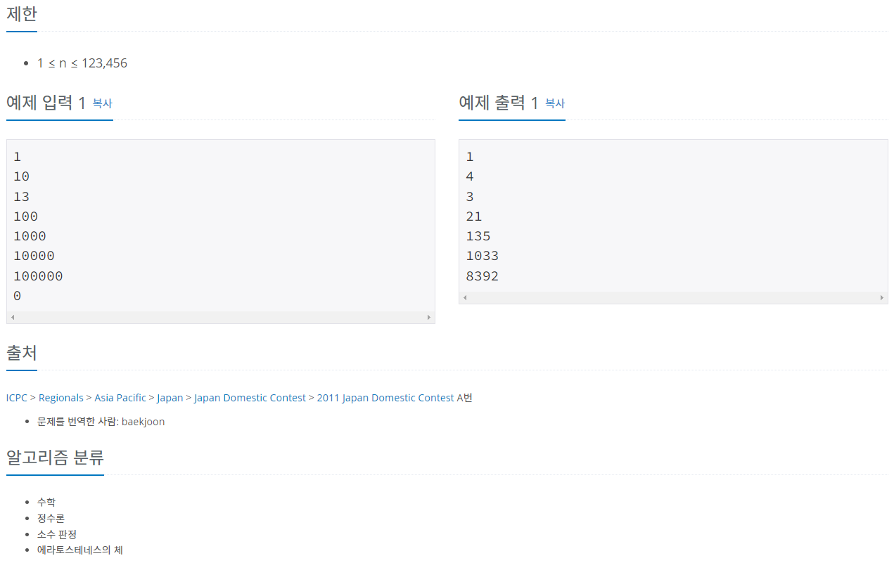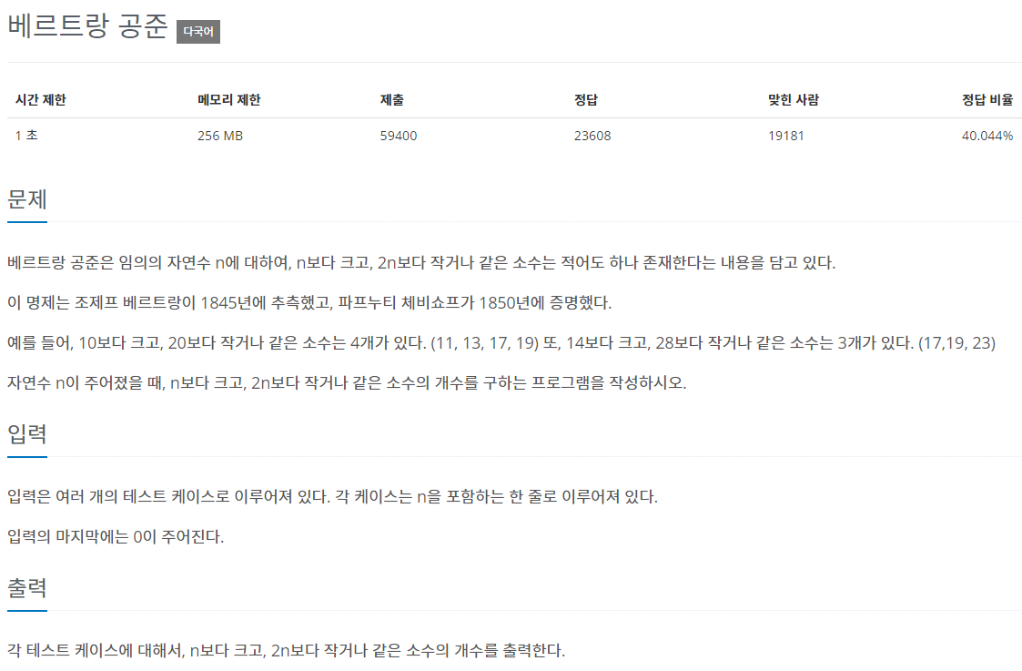 백준 4948 [파이썬] 베르트랑 공준 : 차집합 연산 활용 (tistory.com)