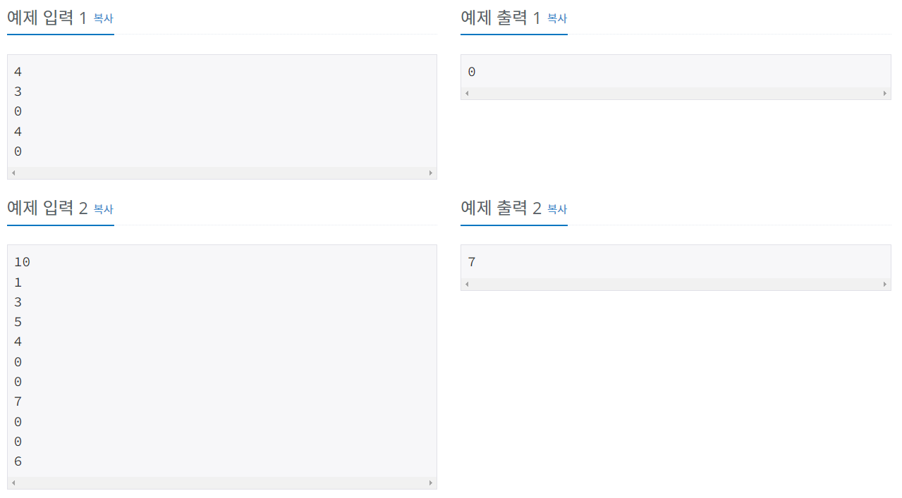 입력 값이 0이면 pop, 아니면 push하고 리트스 총합을 구한다.