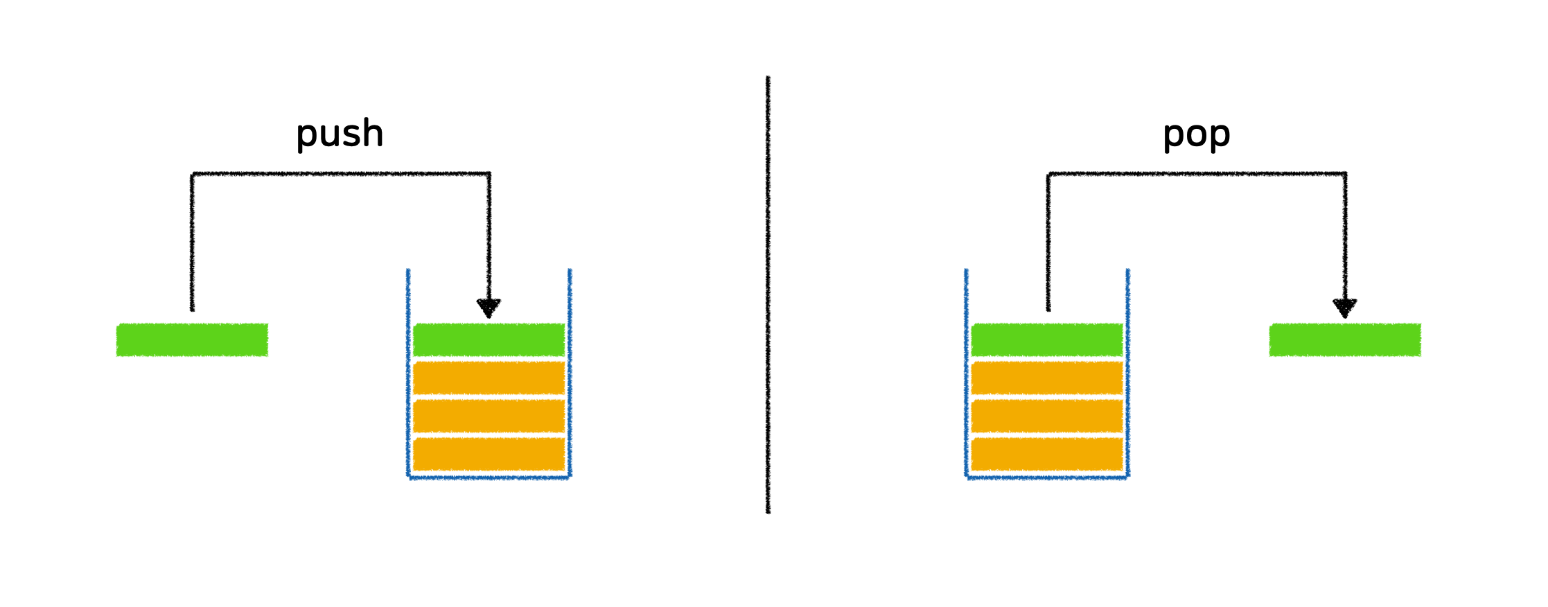 가장 마지막에 삽입한 데이터를 삭제하는 과정을 pop이라고 부른다.
