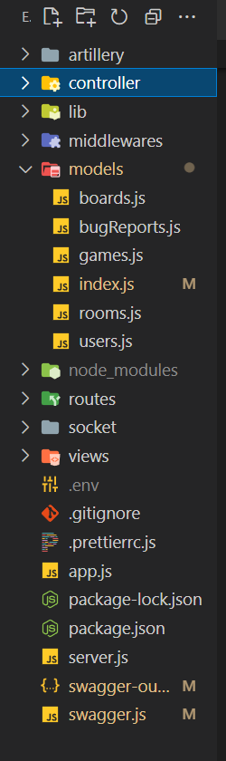 여기서 app.js, swagger.js, swagger-output.json, models>index.js, .env 파일이 사용된다.