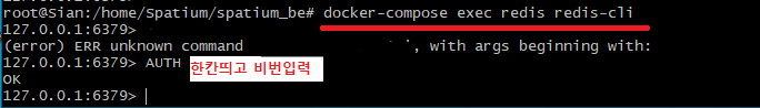 AUTH [redis.env 의 password 입력] - redis 비번을 입력하면된다