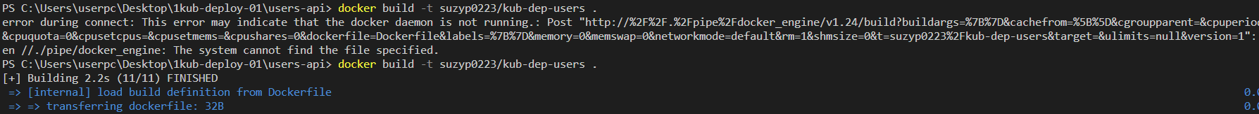PS C:\Users\userpc\Desktop\1kub-deploy-01\users-api> docker build -t suzyp0223/kub-dep-users .