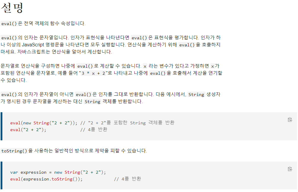 https://developer.mozilla.org/ko/docs/Web/JavaScript/Reference/Global_Objects/eval