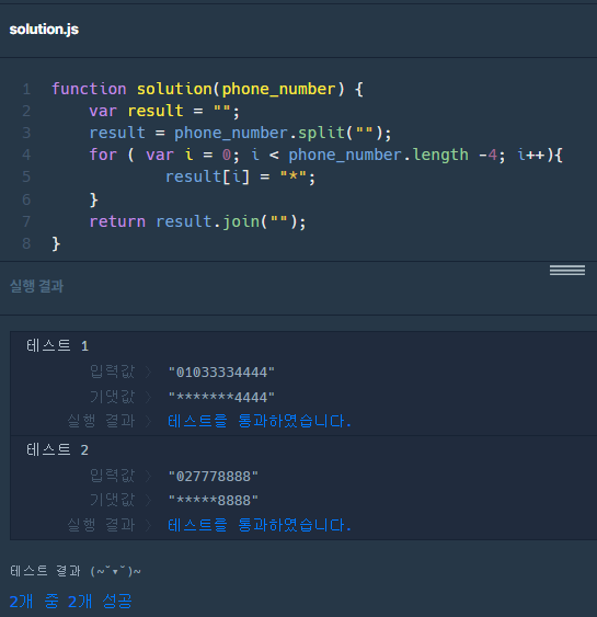 항해 6일)JS - 9프로그래머스 핸드폰 번호 가리기 본문