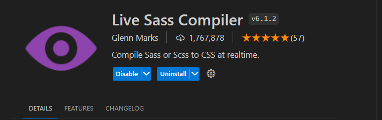 scss를 css로 변환하는 방법 2가지 1. Live Sass 확장자 vscode에서 scss를 쓰기전 Extensions 에서 [ Live Sass ] 확장자를 먼저 설치한다. SCSS 파일을 자동으로 CSS 파일로 변환시켜준다. 2. 명령어 1). https://sass-lang.com/install/ 참고.