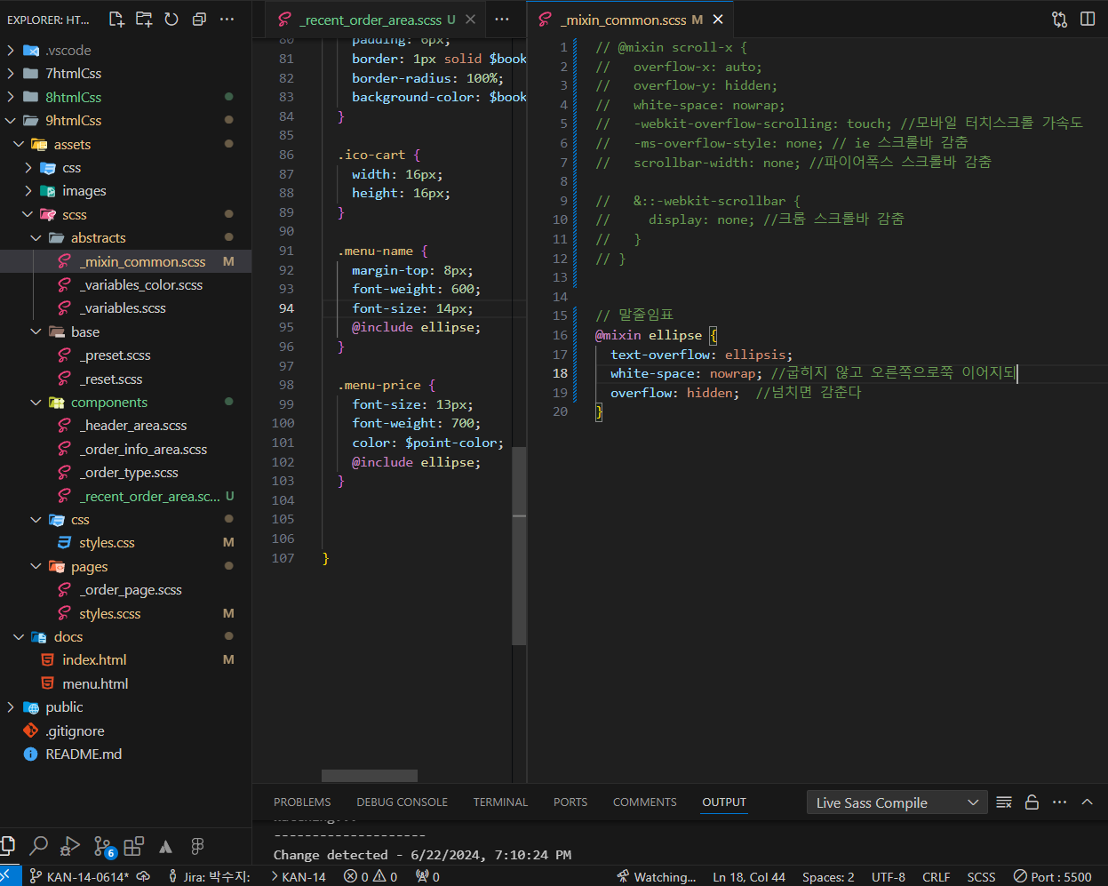 아래 _mixin_common.scss 파일의 내용은 텍스트 한줄 말줄임 표시 ' ... ' 이다.