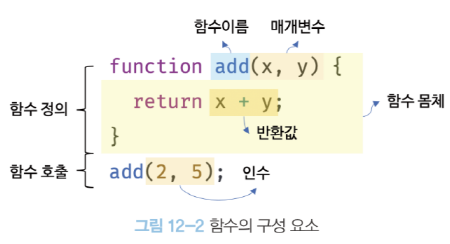 // 함수 호출var result = add(2, 5);// 함수 add에 인수 2, 5를 전달하면서 호출하면 반환값 7을 반환.console.log(result); // 7