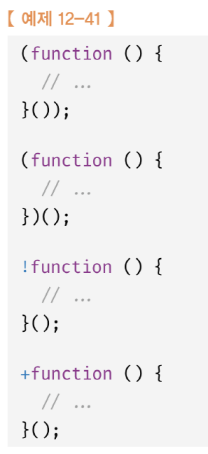 - 즉시 실행 함수는 단 한 번만 호출되며 다시 호출할 수 없음.