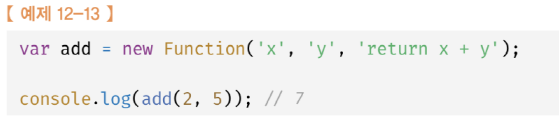 // 함수 선언문은 표현식이 아닌 문으로 변수에 할당할 수 없음.// 하지만 함수 선언문이 변수에 할당되는 것처럼 보임.var add = function add(x, y) {return x + y;};// 함수 호출console.log(add(2, 5)); // 7