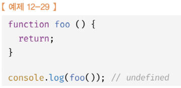 - return 키워드 뒤에 반환값으로 사용할 표현식을 명시적으로 지정하지 않으면 undefined가 반환됨.