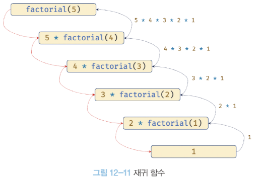 - factorial 함수 내부에서 자신을 호출하는 식별자 factorial은 함수 이름.
