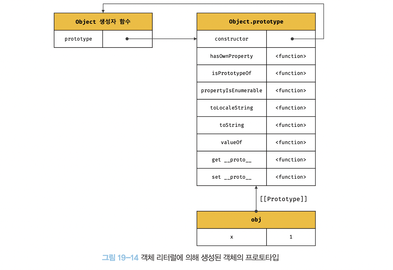 - 객체 리터럴에 의해 생성된 객체의 프로토타입 : Object.prototype.