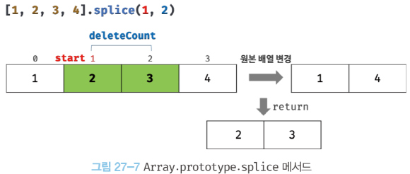 [예제 27-09]// "16.2. 프로퍼티 어트리뷰트와 프로퍼티 디스크립터 객체" 참고console.log(Object.getOwnPropertyDescriptors([1, 2, 3]));/*{'0': {value: 1, writable: true, enumerable: true, configurable: true}'1': {value: 2, writable: true, enumerable: true, configurable: true}'2': {value: 3, writable: true, enumerable: true, configurable: true}length: {value: 3, writable: true, enumerable: false, configurable: false}}*/