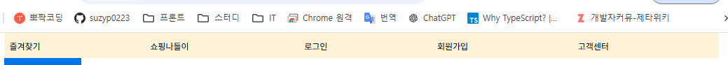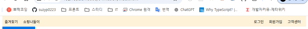 다음, [ 즐겨찾기, 쇼핑나들이 ] / [ 로그인 > 회원가입 > 고객센터 ] 이렇게 두 덩어리로 띄우는걸