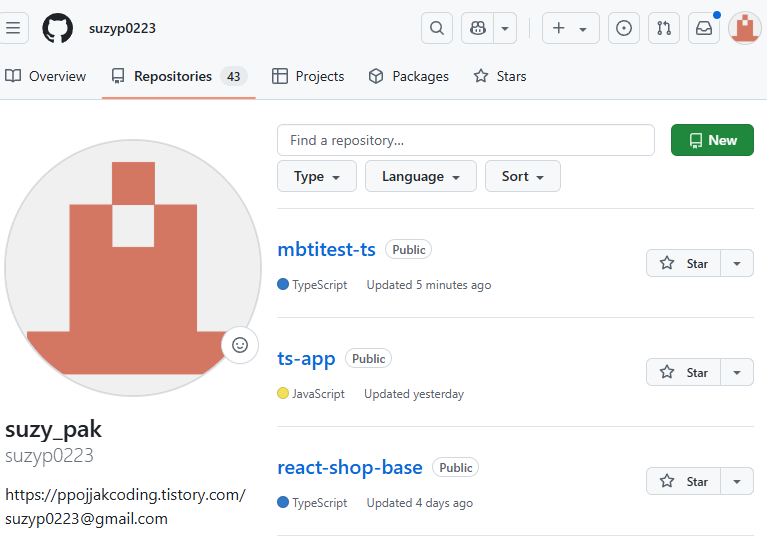 vscode에서 커밋완료 후 깃헙 홈피로 들어가 확인하면