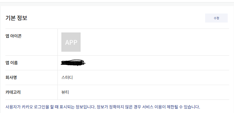 앱아이콘 저장하고 나면 [일반] 페이지에 [테스트 앱 정보] 칸이 생긴다.