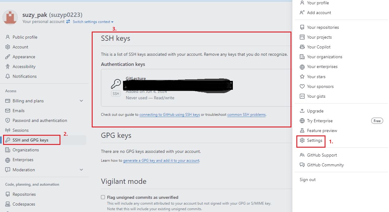 5-1. 내 깃에 들어가서 키 등록.