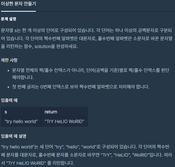 항해 10일)JS - 21프로그래머스 이상한 문자 만들기